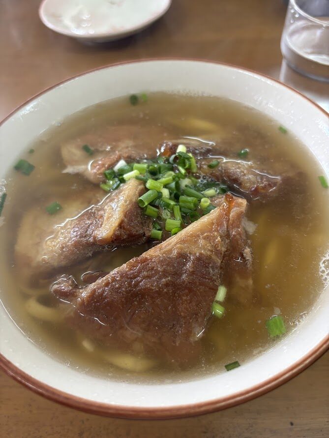 よしこそばはあっさりしたかつおだしのそばで、おめめ的お気に入りポイントはソーキが美味いこと。味もそうですが、めっちゃ煮込まれていてホロホロで美味しんですよ。